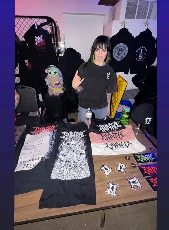 There, I was greeted by Clay, a member of the local metal band “Rotten Mouth” and a member of the organization “The Warp Corps”. Both of these groups are significant contributors to the event I’m attending. The event, titled “Metal Cares Market,” brings together over a dozen incredible artists and artisans, along with four bands: Strident Escape, Rotten Mouth, Wings of Severance, and SVNTN (pronounced seventeen). Strident Escape’s Matt Monson organized the event, and he did an outstanding job. The event successfully raised over $2,000 to support The Warp Corps’ mission.